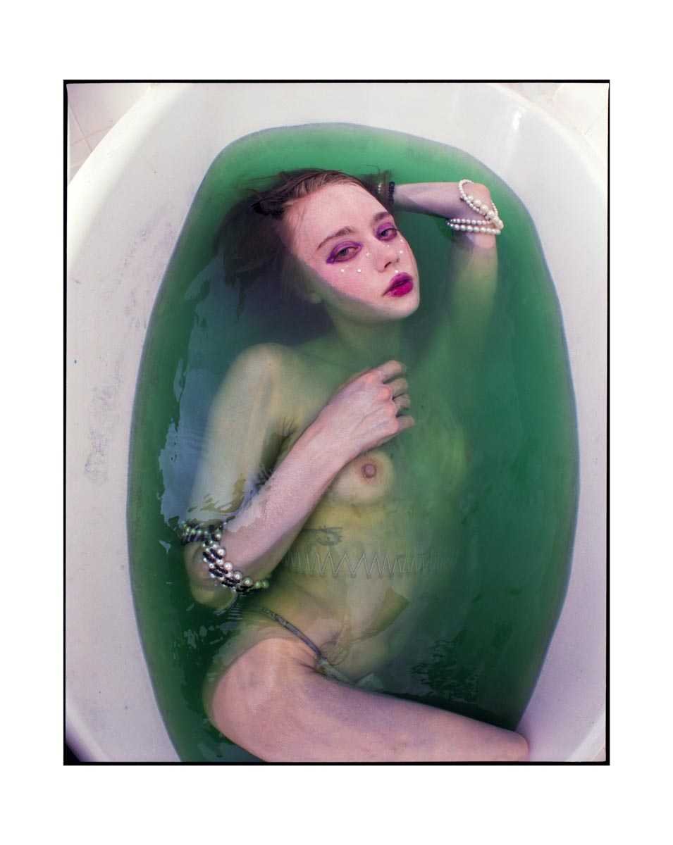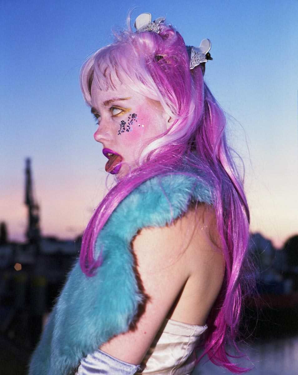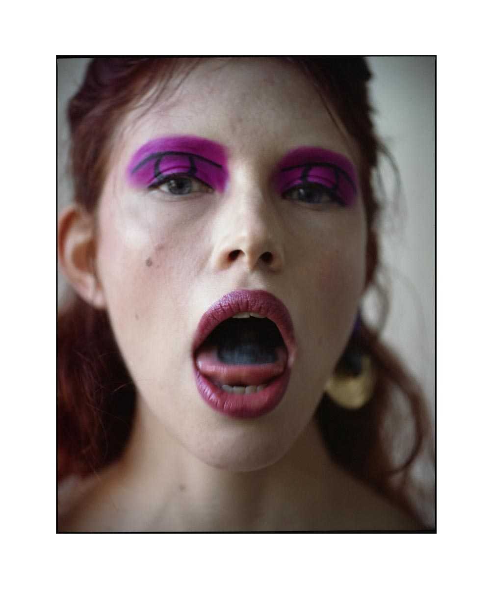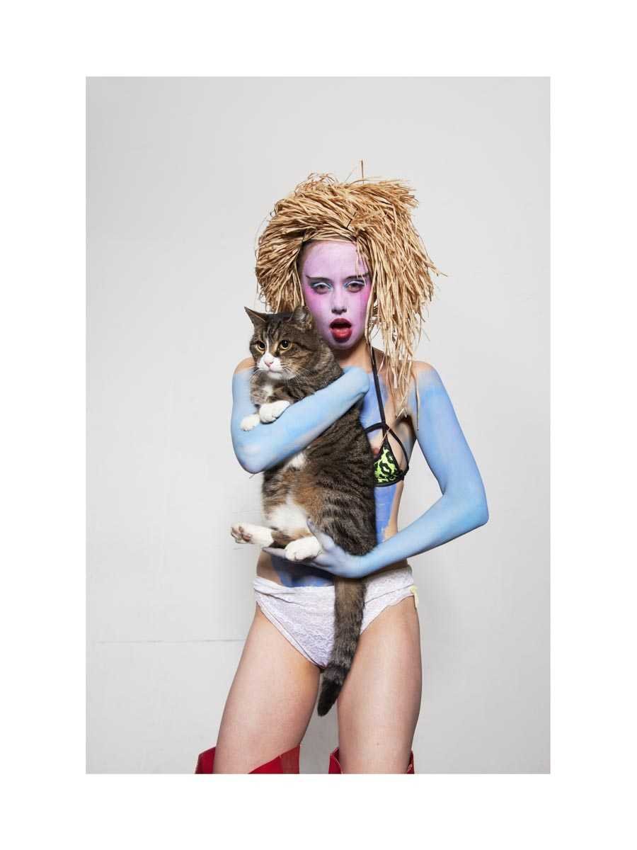 Hat / Fashion Designer. Her child-like yet provocative charisma inspired both artists to have together several shootings over a period of 2 years. To disobey the fashion industry’s snobiety and fakeness, they developed a rough and controversial DIY working style and Szproch with a sense of irony decided to finish a project in the form of a glamorous magazine mock-up in an edition of 10 copies.
