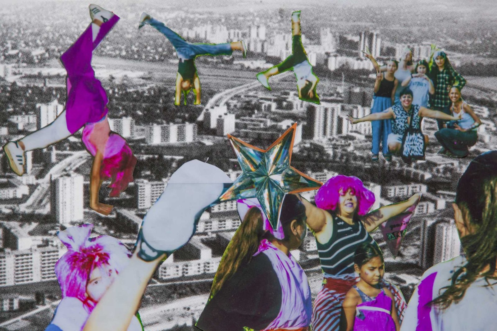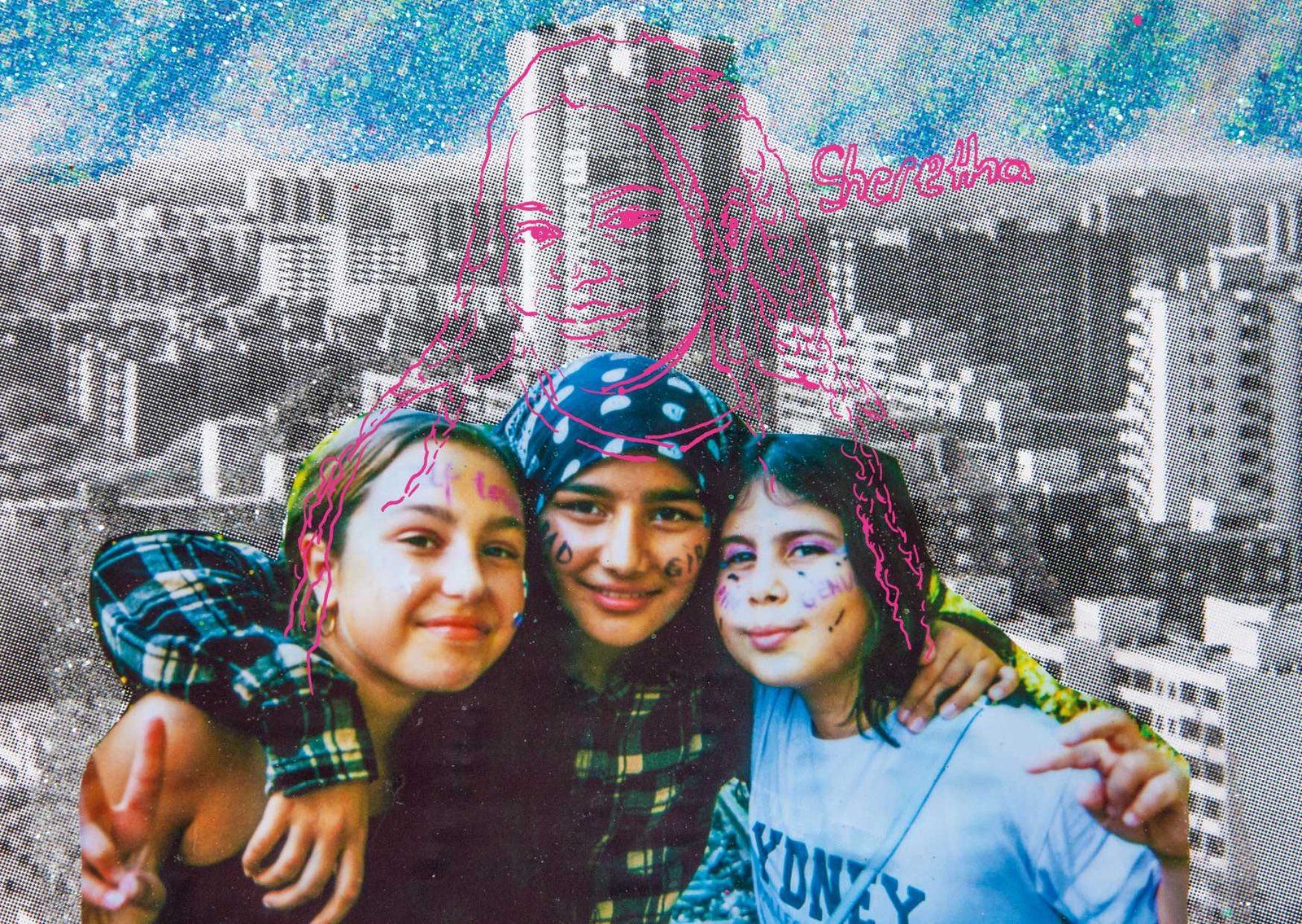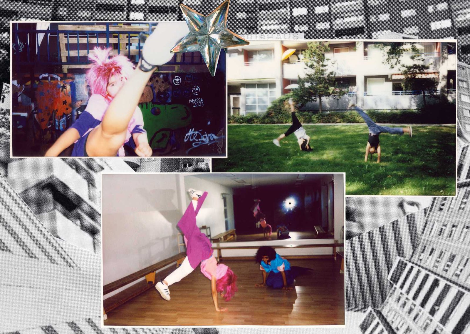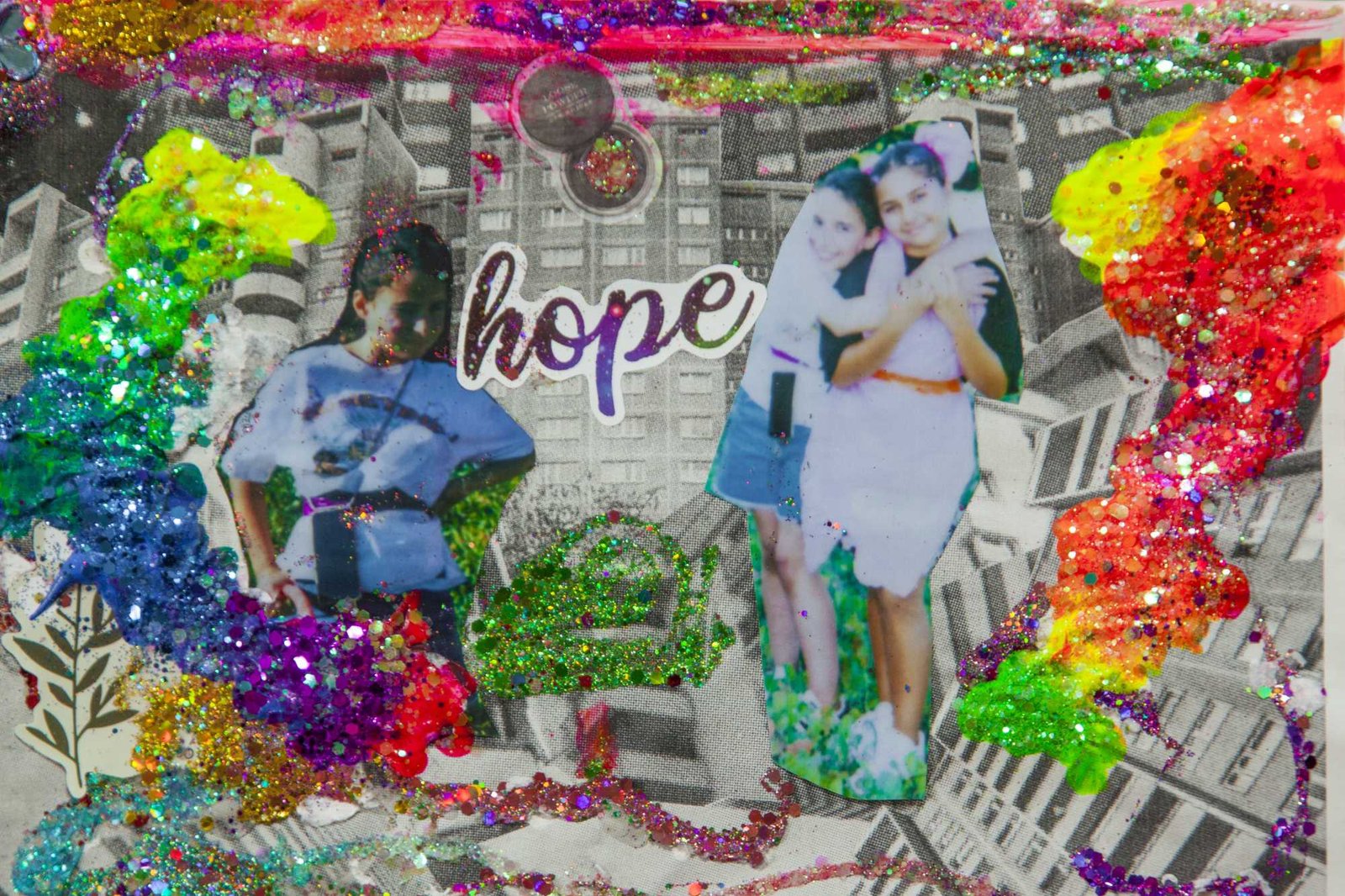 in Gropiusstadt, Berlin. Under the theme “Gemeinsam Anders Sein” — Being Different Together — the girls designed costumes, painted masks, and took instant analog portraits of one another, exploring self-expression through imaginative play. The process combined collage, drawing, painting, and glitter — a space for experimentation, self-confidence, and attunement to oneself: the simple but radical idea that being different is not just acceptable, but worth celebrating together. The project concluded with a public exhibition and a Leporello publication — the girls co-curated the final show, displaying their works alongside enlarged polaroids; for some, the connections built during the project lasted beyond it, including mentoring relationships that continued afterward.