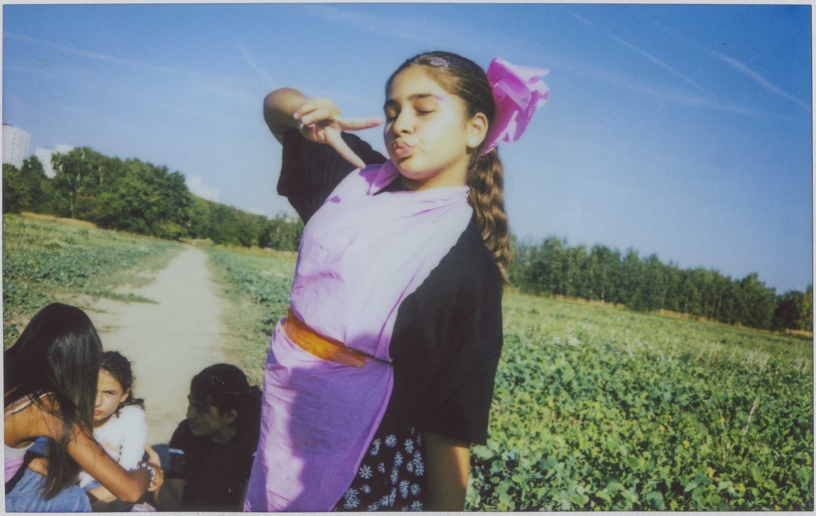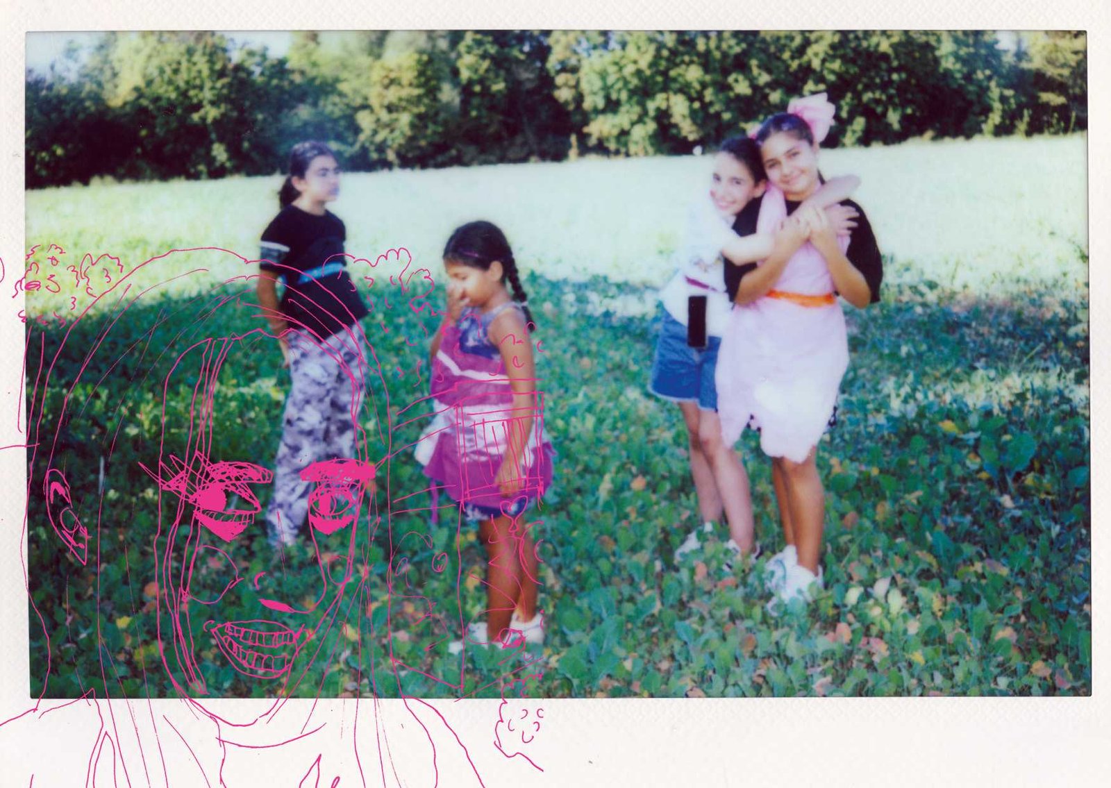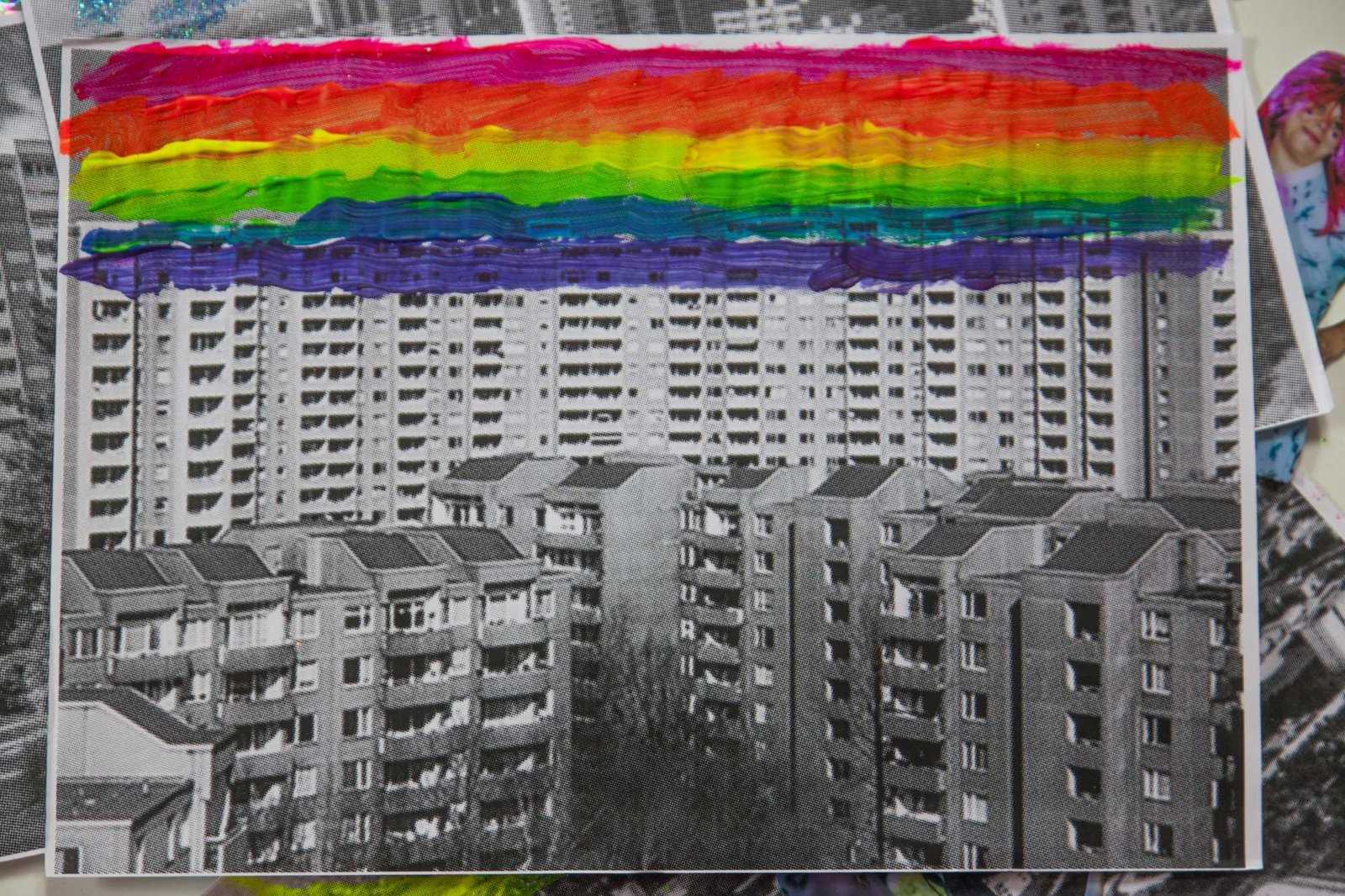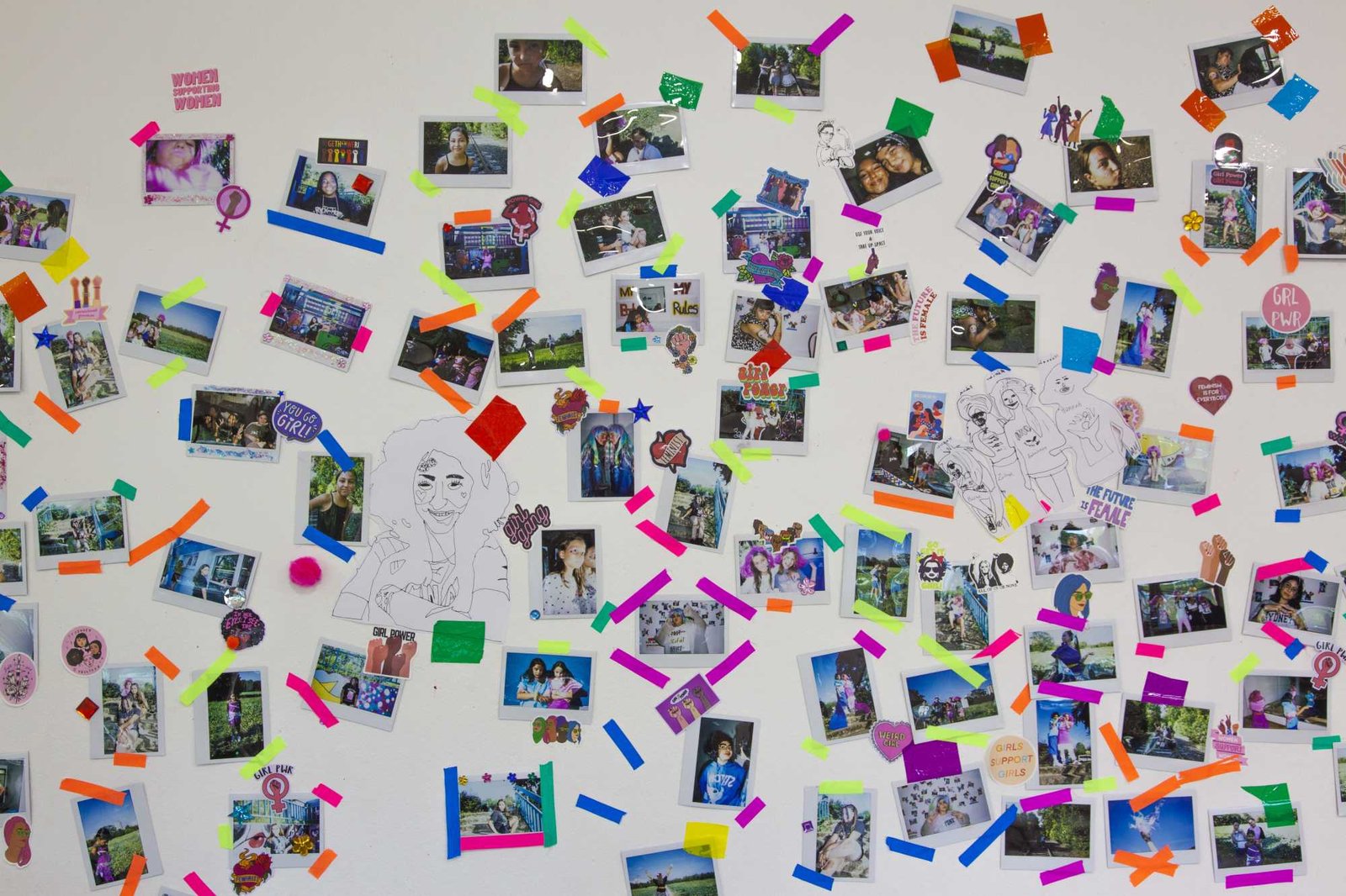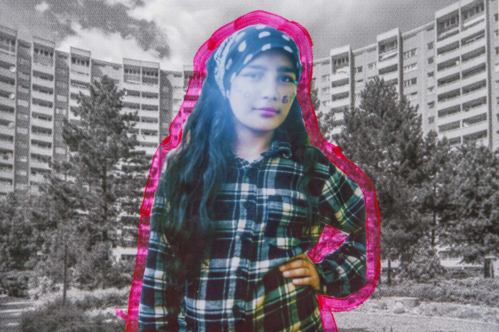 in Gropiusstadt, Berlin. Under the theme “Gemeinsam Anders Sein” — Being Different Together — the girls designed costumes, painted masks, and took instant analog portraits of one another, exploring self-expression through imaginative play. The process combined collage, drawing, painting, and glitter — a space for experimentation, self-confidence, and attunement to oneself: the simple but radical idea that being different is not just acceptable, but worth celebrating together. The project concluded with a public exhibition and a Leporello publication — the girls co-curated the final show, displaying their works alongside enlarged polaroids; for some, the connections built during the project lasted beyond it, including mentoring relationships that continued afterward.