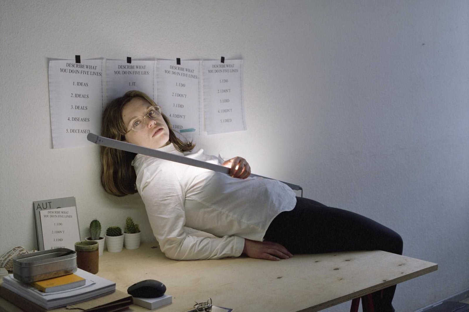 She works with performance, video, sculpture, and writing.